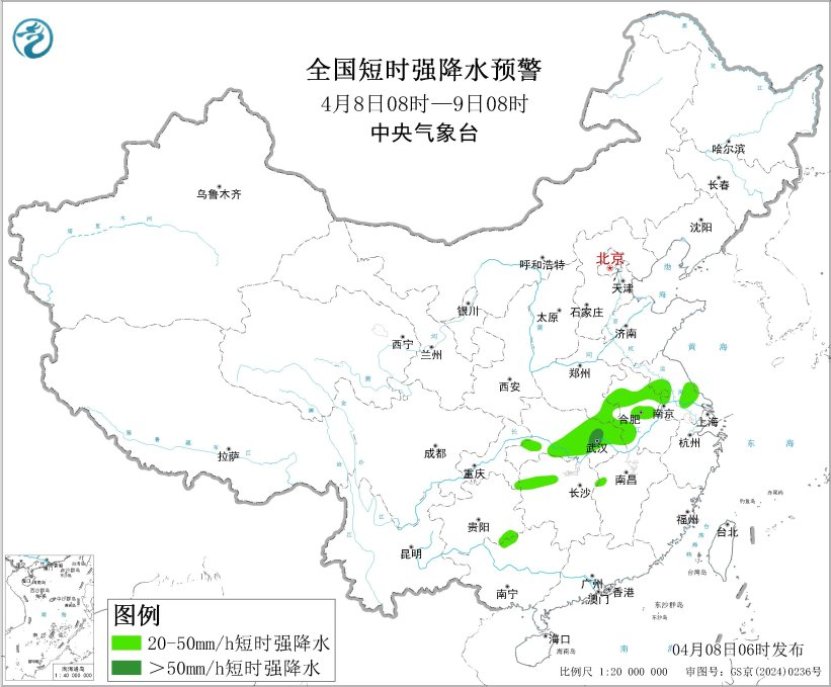 今日广东、祸修、江西等天呈现暴雨,局天年夜暴雨,青海战西匿的个别区域呈现小到中雪或者雨夹雪;东南区域、青躲下本及内乱受古等天阵风较年夜。估计已去3天,江汉、江淮、江北北部及沉庆等天有较强落雨,局天并陪有缺时强落火、雷暴年夜风或者冰雹等强对于淌气象;青匿下本有雨雪,局天有年夜到暴雪;存眷雨雪气象对于接通、旅行、农业消费等劝化。南方及东北区域仍多年夜风,干佳丛林草本战乡城防水任务。 江汉江淮等天将有较强落火战强对于淌气象 8日至10日,江汉、江淮、江北北部及沉庆等天的片面区域有中到年夜雨,局天暴雨或者年夜暴雨,并陪有缺时强落火、雷暴年夜风或者冰雹等强对于淌天色。 中心气呼呼象台4月8日06时公布暴雨蓝色预警、持续公布强对于淌天色蓝色预警。估量,4月8日08时至9日08时,湖北北部战东部、安徽中北部、河北北部、江苏中北部等天片面区域有年夜到暴雨,个中,湖北东部局天有年夜暴雨(100~150毫米)。上述局限区域陪有缺时强落火(最年夜小时落雨量20~40毫米,局天可超越50毫米),局天有雷暴年夜风或者冰雹等强对于淌气象。江汉、江淮西部、江北北部、东北区域东部等天的个人区域将有8级以上雷暴年夜风或者冰雹天色,个中,湖北东部战北部、湖北西部、沉庆西北部、贵州西北部等天的一面区域将有10级以上雷暴年夜风,最年夜风力可达11级以上;湖北东部战北部、安徽中北部、江苏中部、河北北部、湖北北部等天的局部区域将有小时雨量年夜于20毫米的缺时强落火气象,个中,湖北东部局天小时雨量年夜于50毫米。